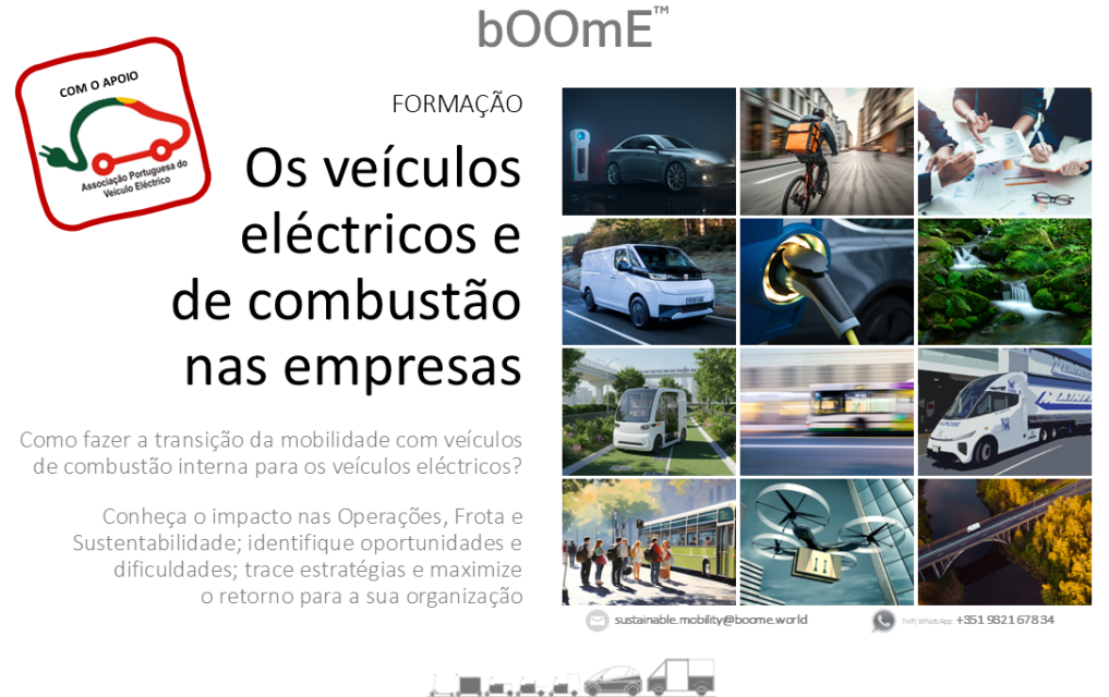 Numa parceria entre o Associado bOOmE e a APVE foi organizada a formação: “Os Veiculos electricos e de Combustão nas Empresas” sob o mote: Como fazer a transição da mobilidade com veículos de combustão interna para os veículos eléctricos? - Conheça o impacto nas Operações, Frota e Sustentabilidade; identifique oportunidades e dificuldades; trace estratégias e maximize o retorno para a sua organização.